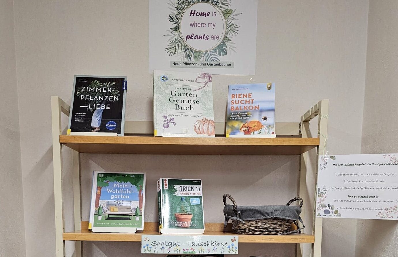 Die Saatgut-Körbchen befinden sich im zweiten Obergeschoss der Stadtbibliothek – direkt neben den Gartenbüchern. Wer also auf der Suche nach neuen Pflanzideen ist oder sich über Gartenbau, Balkon- und Zimmerpflanzen informieren möchte, findet neben einer großen Auswahl an Samen auch passende Fachliteratur.